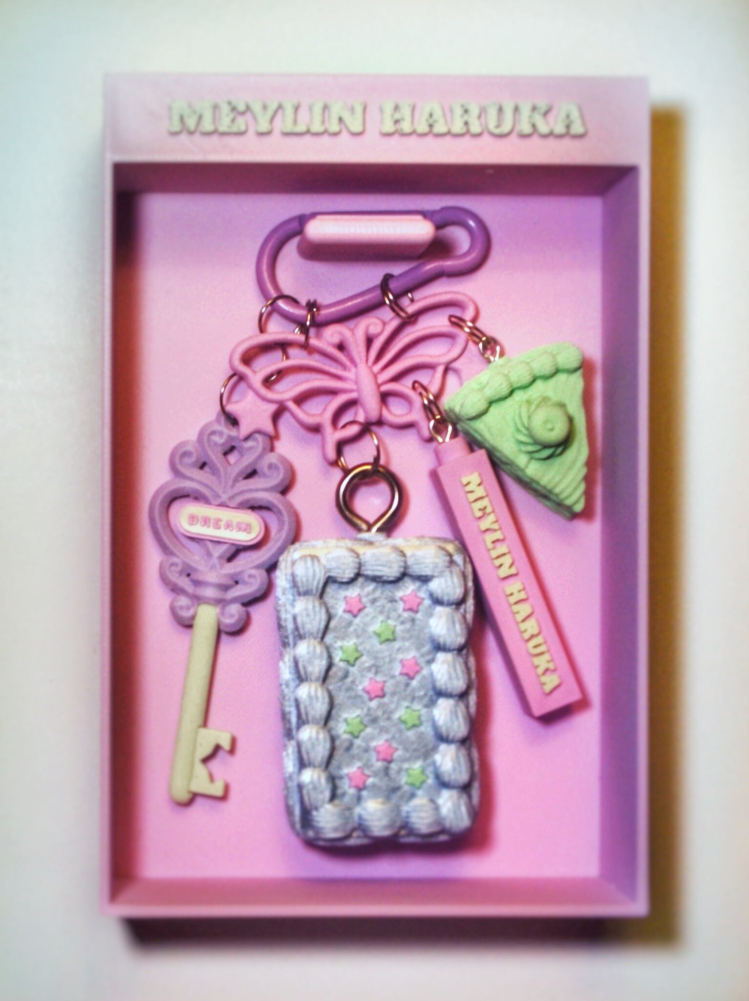 金具以外の全てのパーツをmeylinがモデリングし、3Dプリント出力、研磨仕上げ、コラージュ組立しております。バックチャームやキーホルダーとしてお楽しみください。