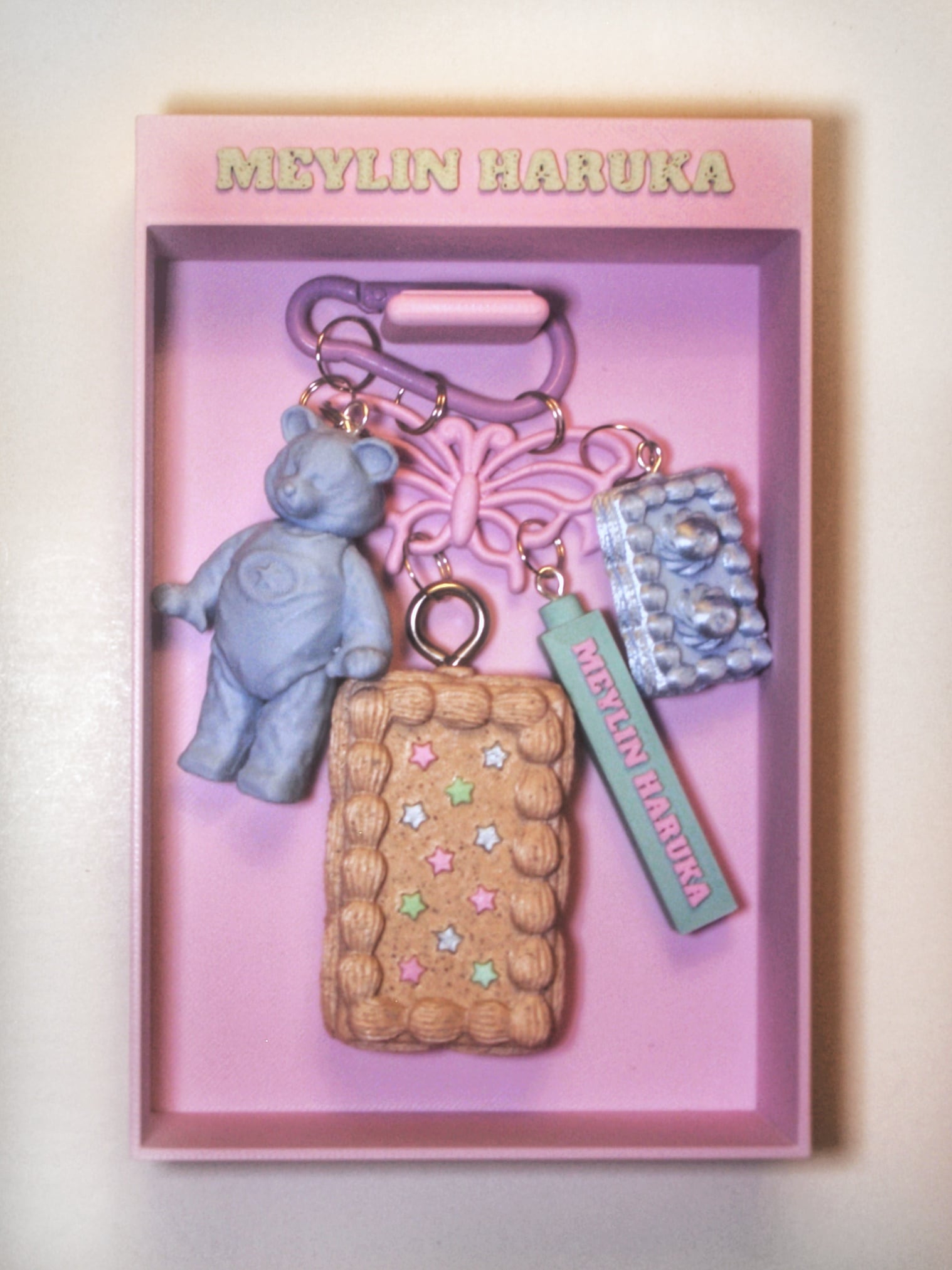 金具以外の全てのパーツをmeylinがモデリングし、3Dプリント出力、研磨仕上げ、コラージュ組立しております。バックチャームやキーホルダーとしてお楽しみください。