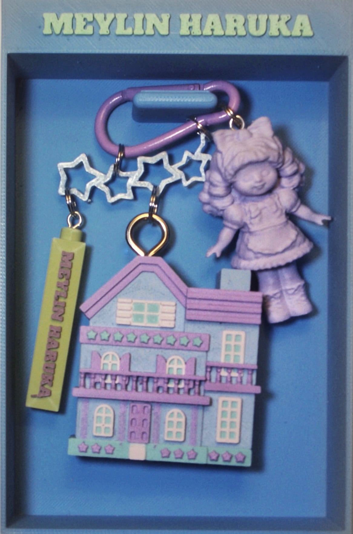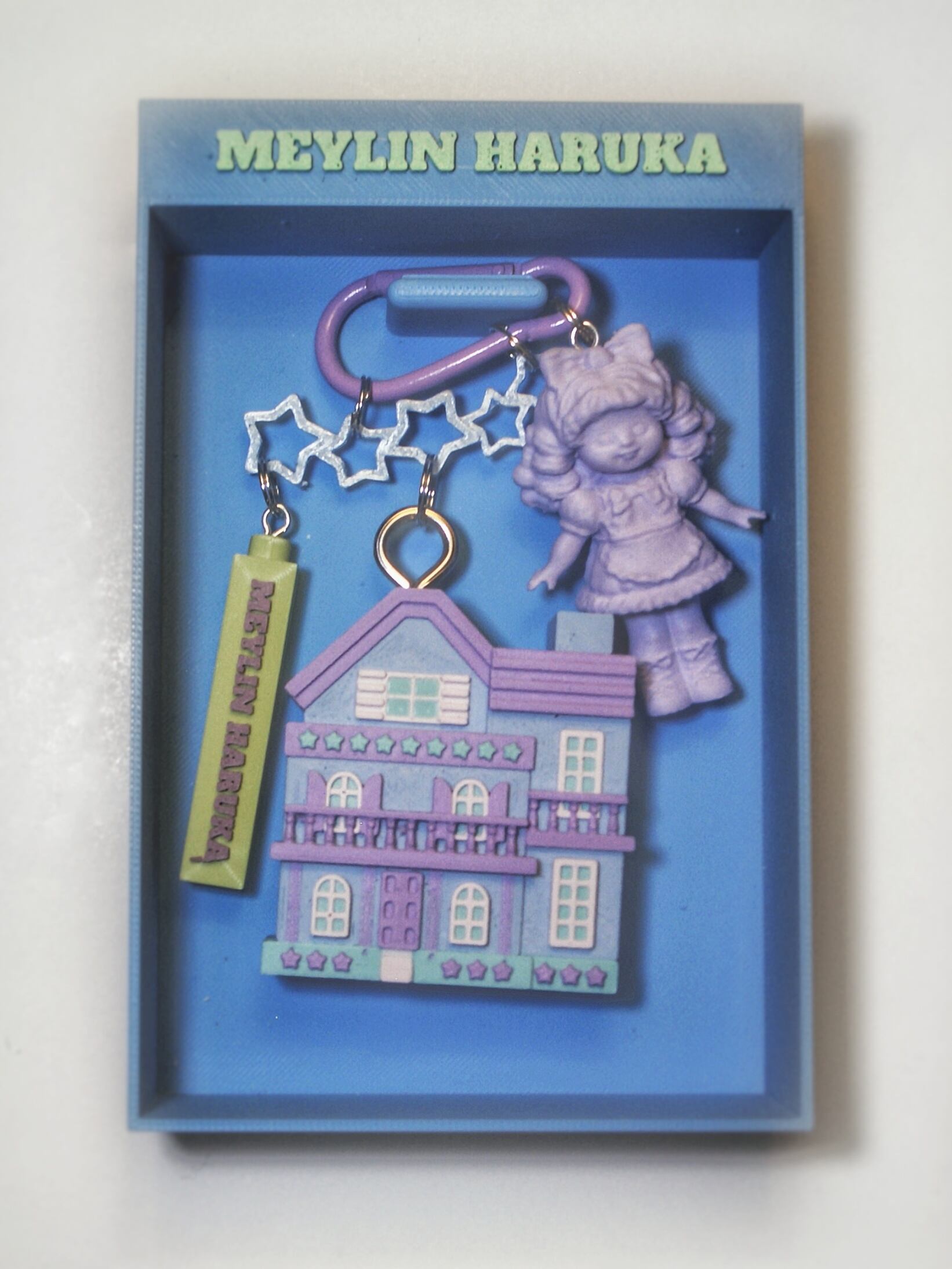 金具以外の全てのパーツをmeylinがモデリングし、3Dプリント出力、研磨仕上げ、コラージュ組立しております。バックチャームやキーホルダーとしてお楽しみください。